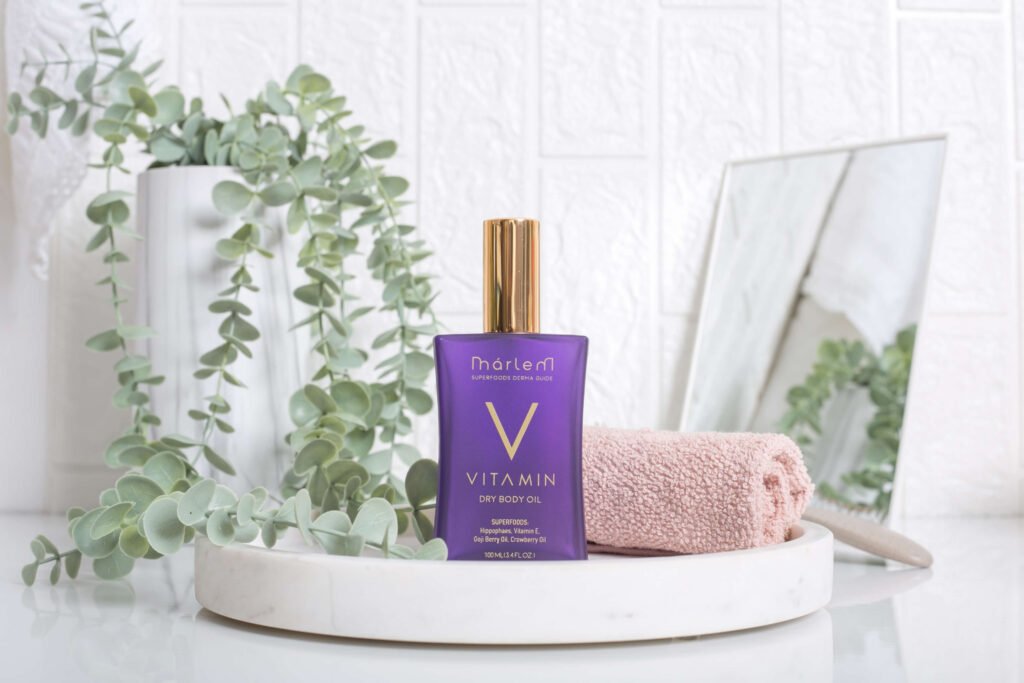 Ξηρό ενυδατικό λάδι σώματος με Ιπποφαές, Βιταμίνη Ε, Goji berry και Crowberry.